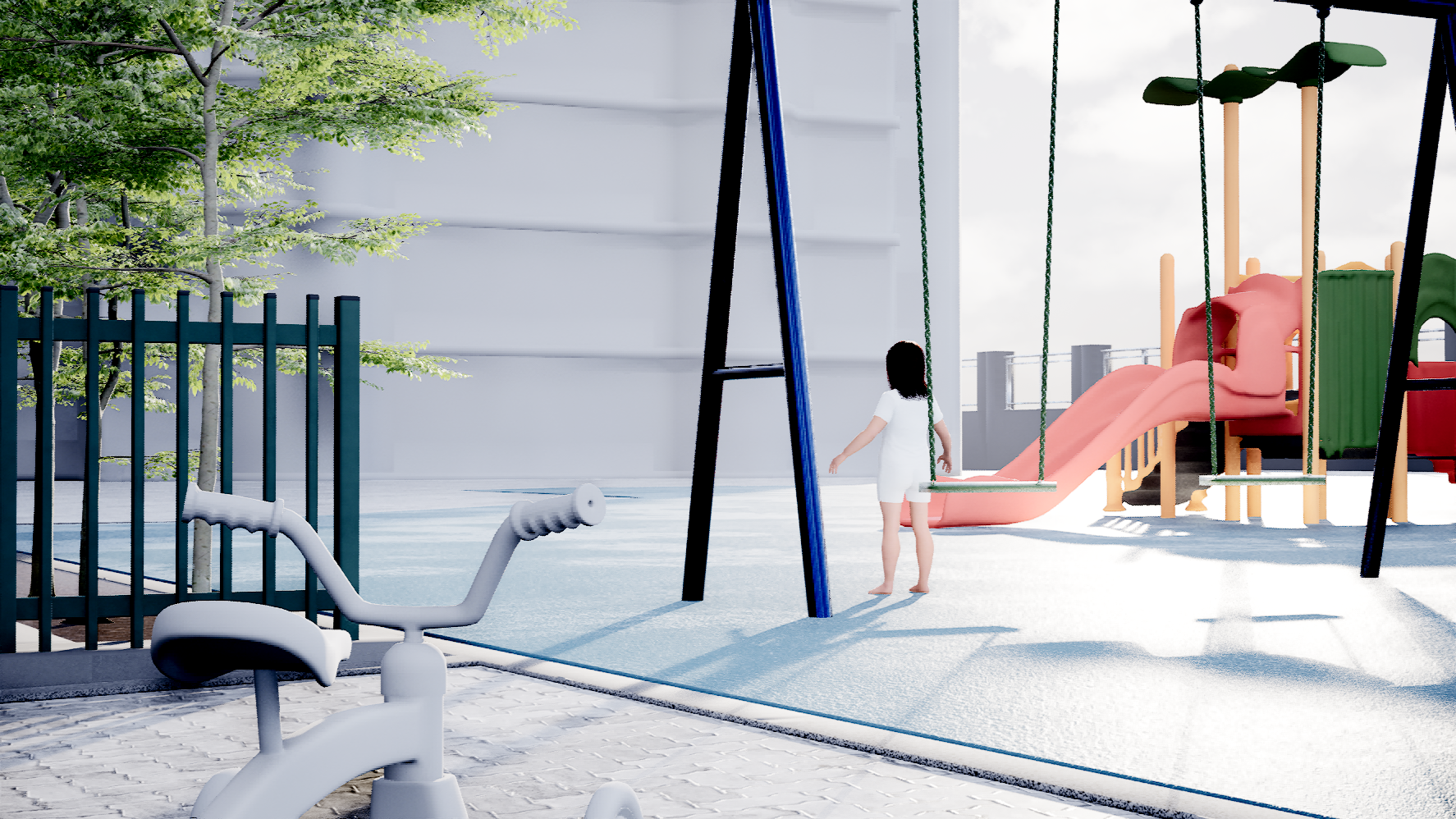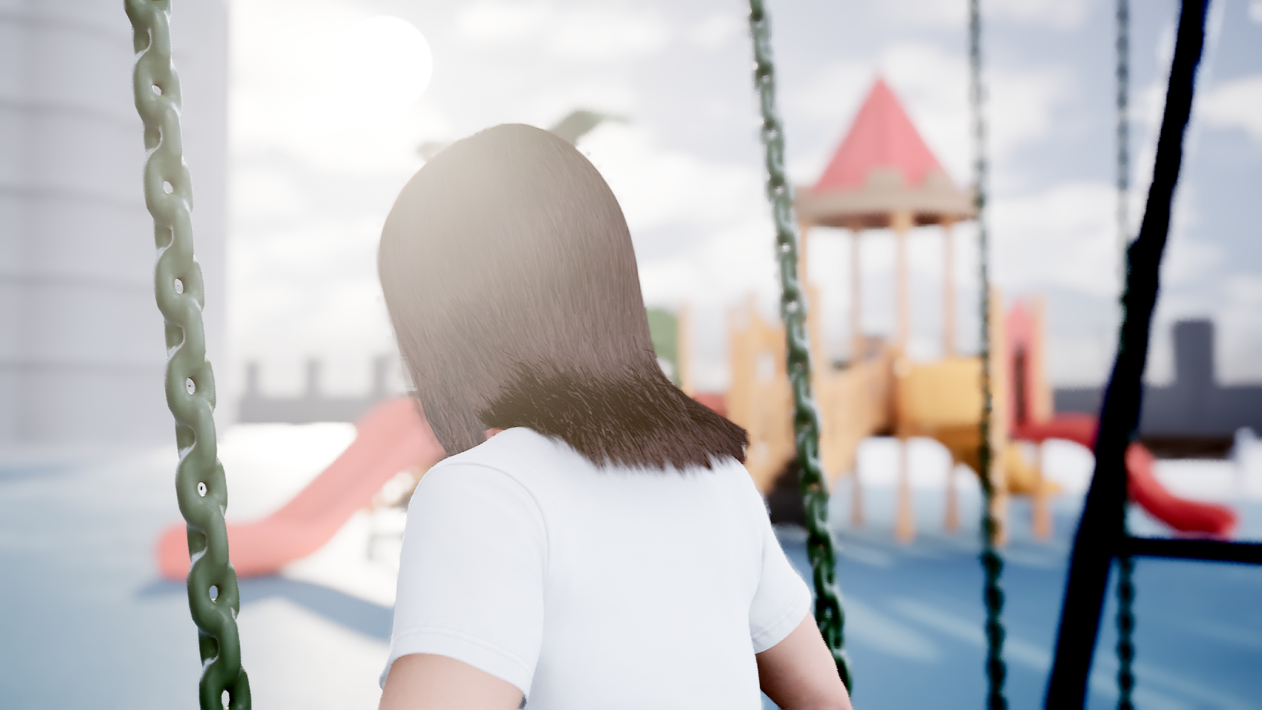 I started to texture the playground scene and create the visual for the memory scene. I am planning to make it more vibrant and colorful.