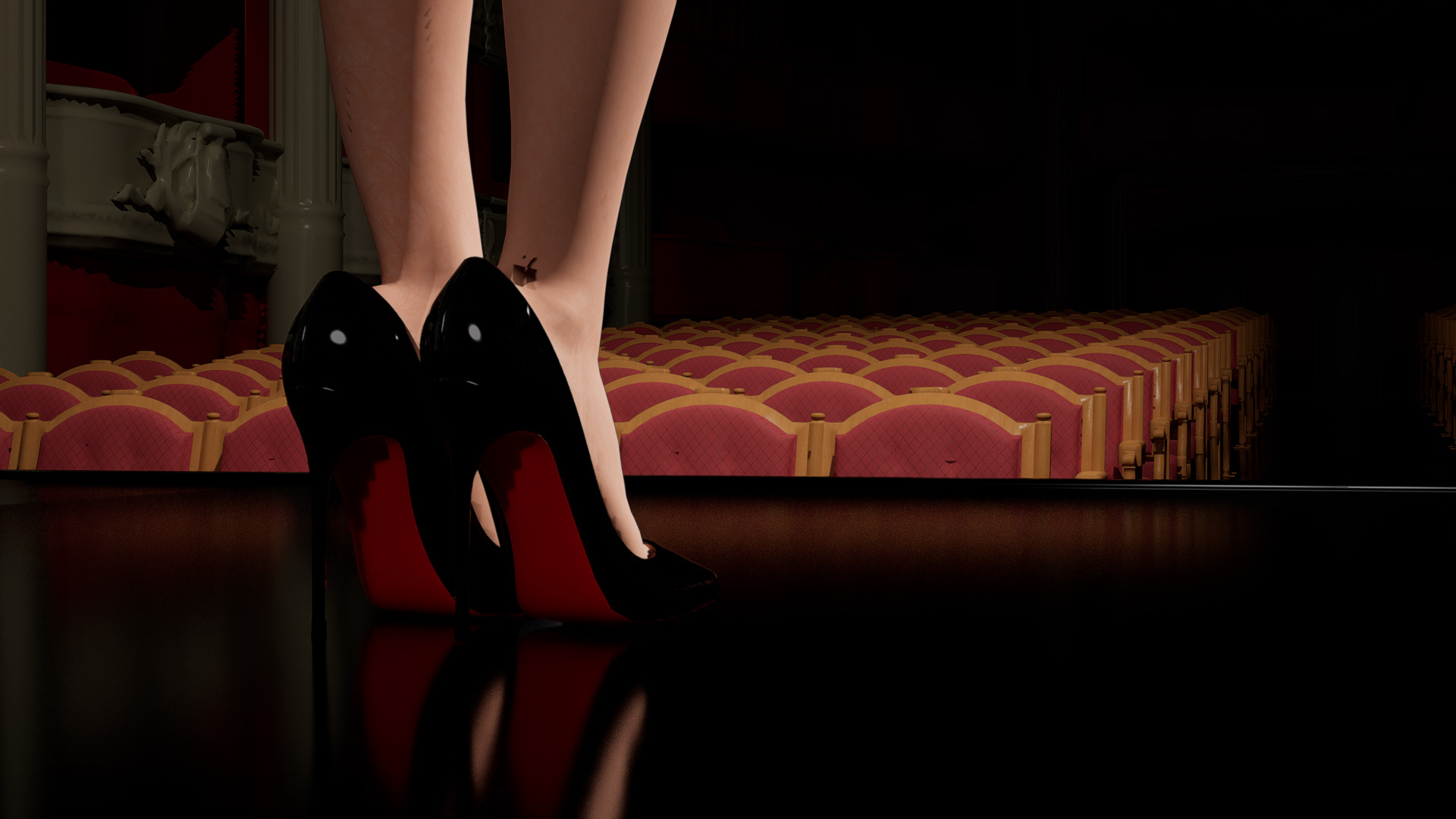 Adjusting to the changes, our team decided to re-divide the responsibilities. For the look dev and the lighting specifically, Julian will be responsible for the red carpet scenes, and I will be responsible for the stage scenes and the production scene at the end. Julian will also take over the heels look dev.